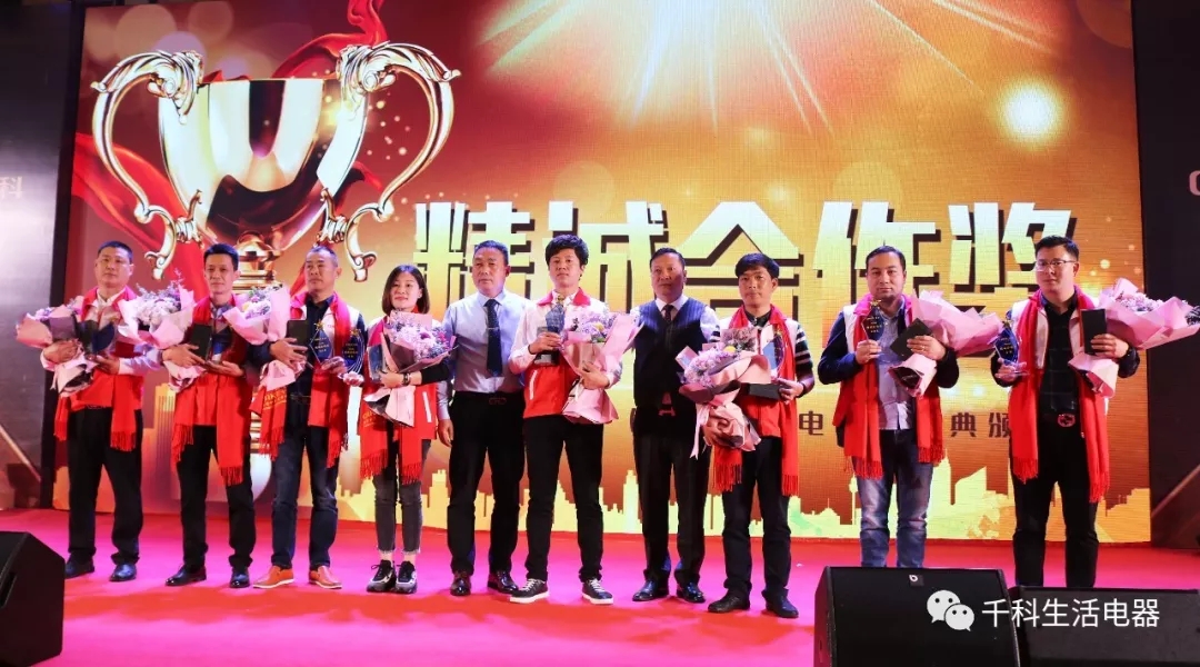 十年風雨兼程,千科經歷過品牌變故,也順風順水地由衷歡笑過。在千科電熱水器事業部吳亞娟代表的自述下,往事涌現,千科的榮譽是集體的奮戰與經久的情誼交織而成。為感恩付出,千科設立了精誠合作獎、電熱事業卓越貢獻獎、成長之星獎和銷售精英獎這四大獎項,表彰優秀經銷商代表,呈上千科最誠摯的感謝。